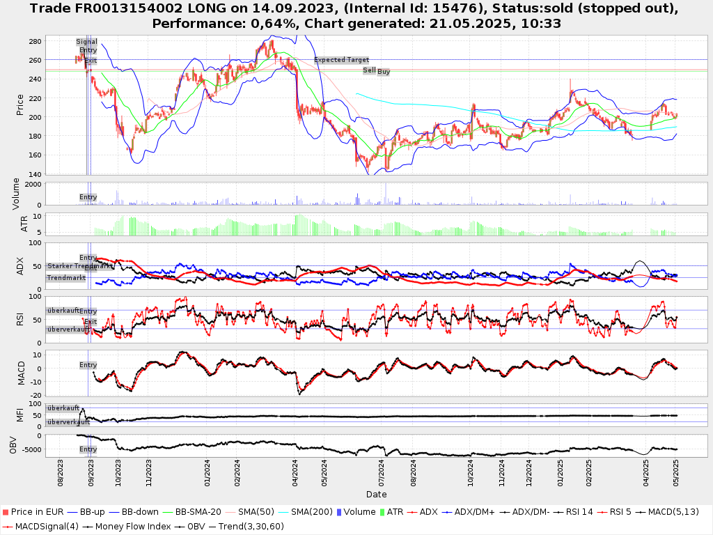 | Handelshistorie: | day 2: UPDATING STOP mark for LONG 21530 from 243.14 to 249.7, trade: trade id: 21530, stock.id: 15476 day 3: trade status update: in depot -> sold (stopped out), trade: trade id: 21530, stock.id: 15476 |